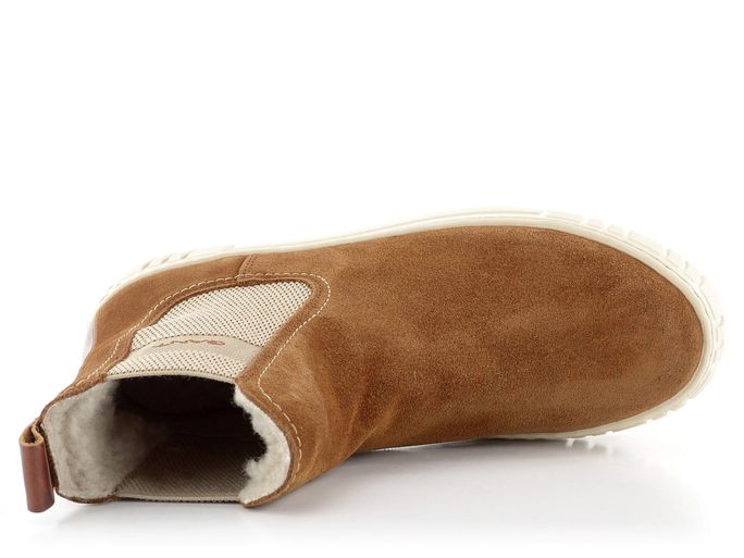 Dámský kožený sneaker kotník v přírodní barvě, na platformě a s vlněnou podšívkou.