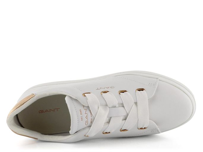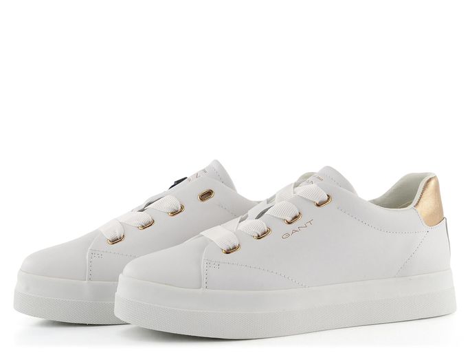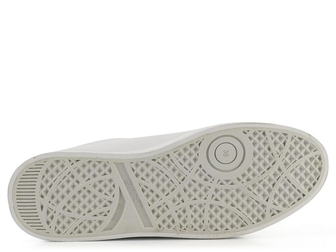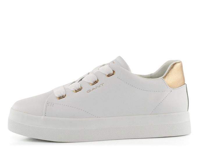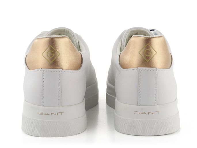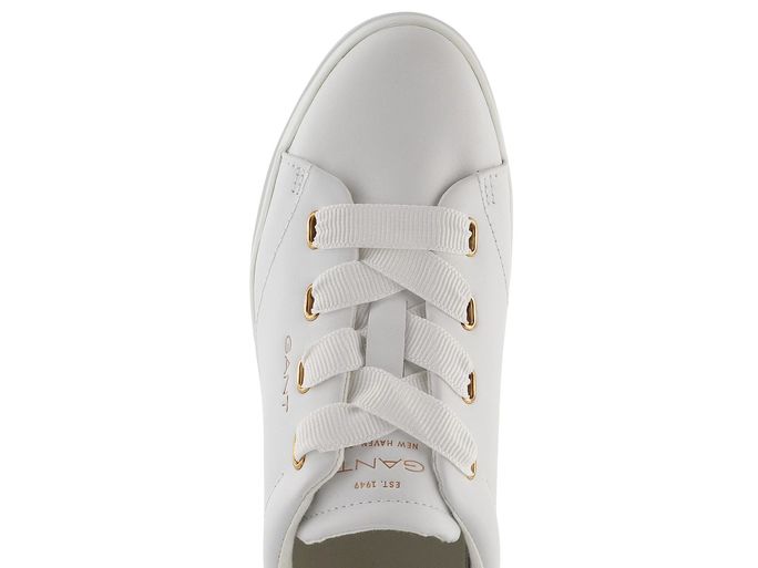 Dámské kožené bílé tenisky v jednoduchém střihu s decentními metalickými prvky.
