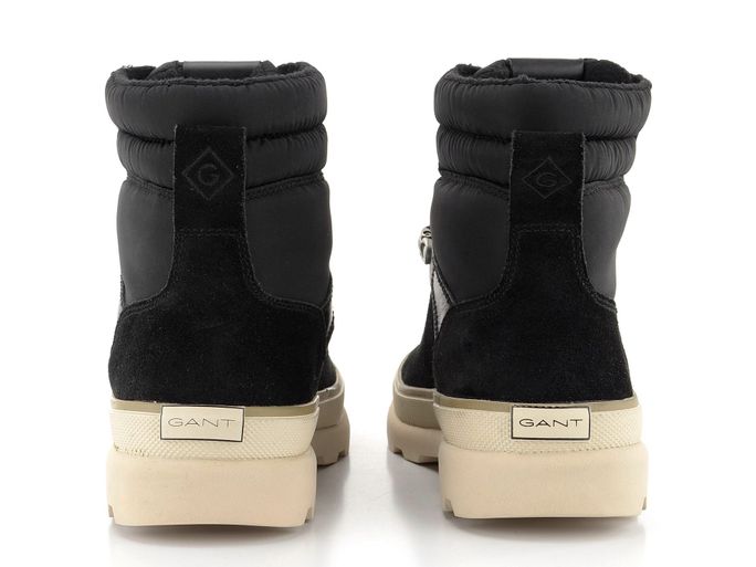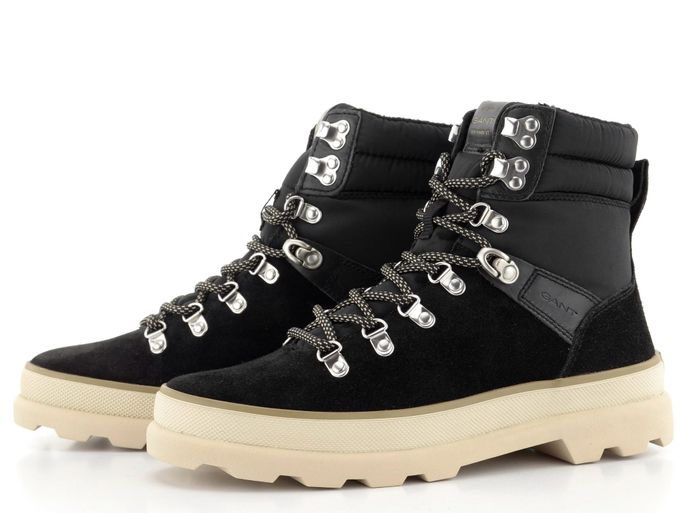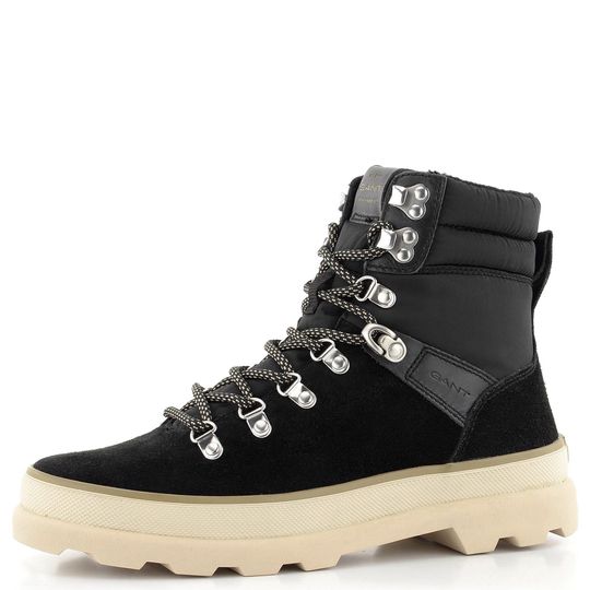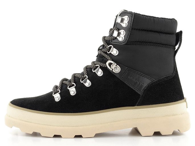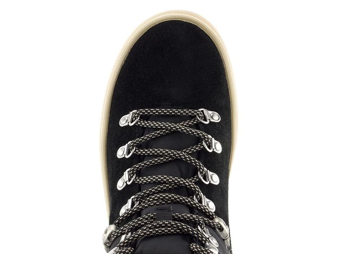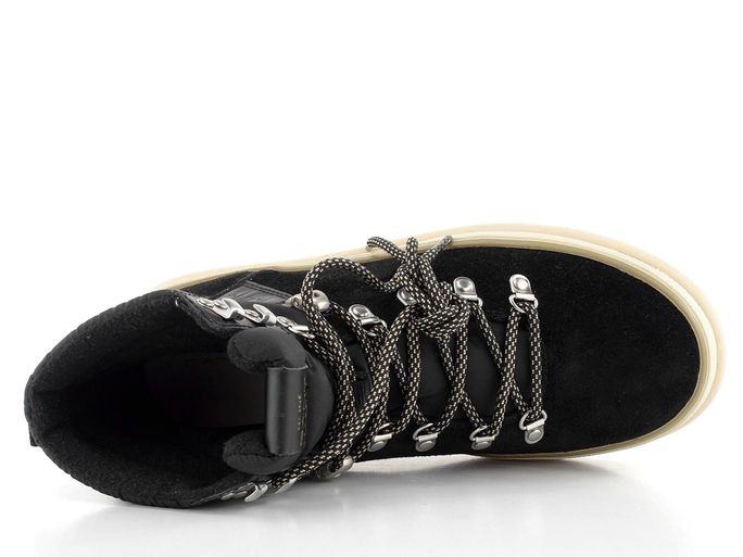 Dámský černý semišový kotník na šněrování, s mírným zateplením a s vyšší kontrastní podešví.
