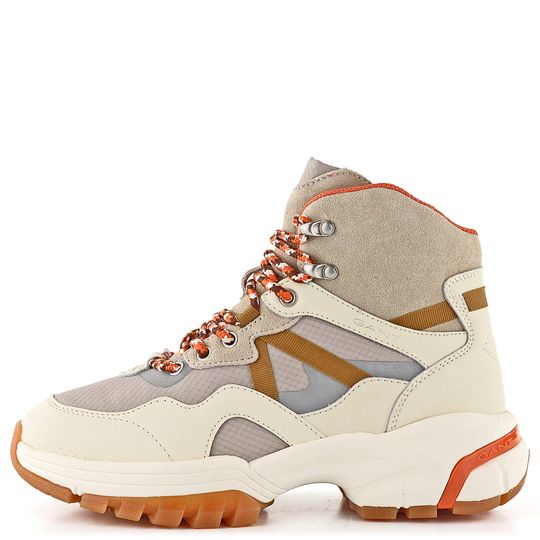 Zažijte dokonalé spojení stylu a pohodlí s kotníkovými teniskami značky Gant. Tyto jedinečné kotníkové tenisky na vysoké platformě z kolekce podzim/zima 2022/23 jsou navrženy pro ženy, které ocení autentický design a kvalitu. Svrchní materiál kombinuje velurovou kůži, hladkou kůži, syntetiku a textilii, což vytváří harmonický a moderní vzhled. Barevná kombinace světlé béžové, šedé, oranžové a hnědé barvy dodává teniskám jedinečný charakter. Komfort je zajištěn kulatou špičkou, silně polstrovaným kotníkovým lemem a jazykem a extra měkkou koženou stélkou. Reflexní prvky a šněrování s kulatými tkanicemi a kovovými očky přidávají na praktičnosti. Vysoká platforma ve sportovním stylu s hrubým vzorkem a latexovým nášlapem zajišťuje stabilitu a pohodlí při každém kroku. Tyto tenisky jsou ideální volbou pro městské prostředí i lehkou procházku venku.