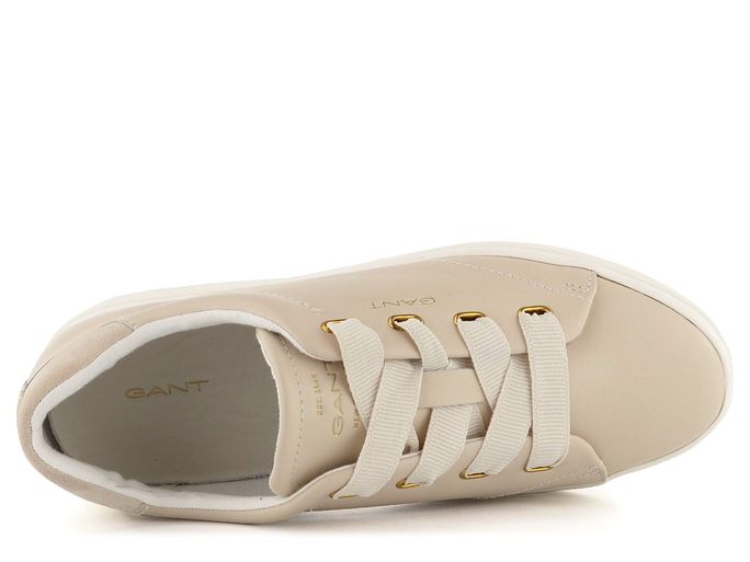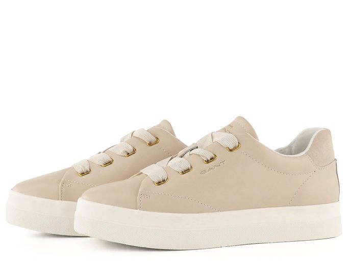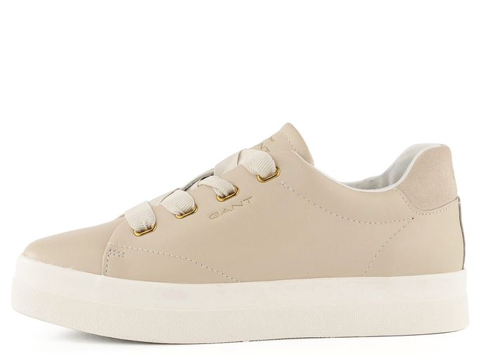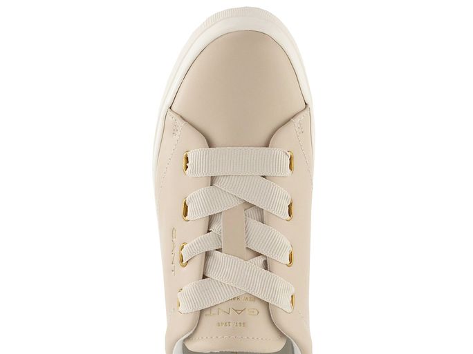 Dámské béžové kožené polobotky na vyšší bílé podešvi, v jednoduchém střihu a na šněrování.