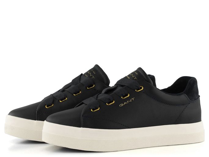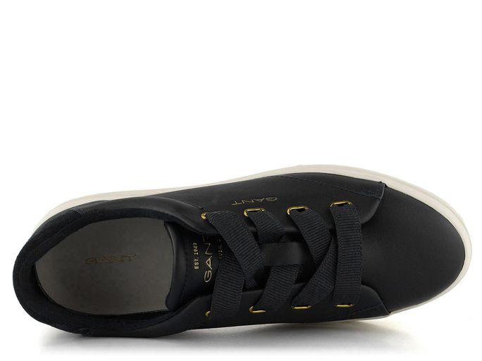 Dámské kožené černé polobotky na vyšší bílé podešvi, v jednoduchém střihu a na šněrování.