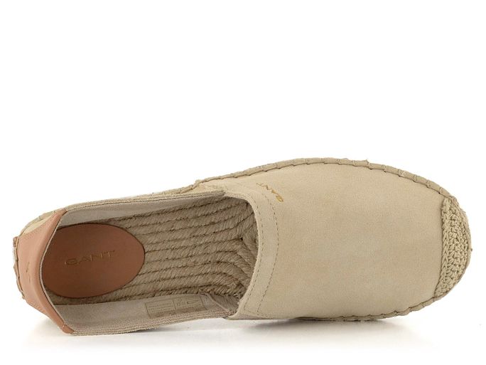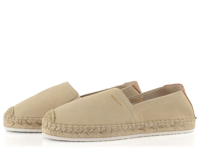 Elegantní a pohodlné, tyto kožené espadrilky od módní a světoznámé značky Gant jsou ideální volbou pro jarní a letní sezónu. Béžová barva v kombinaci se světle hnědým patním dílem dodává obuvi nadčasový vzhled. Svršek z broušené kůže v kombinaci s textilií a jutou zajišťuje nejen styl, ale i komfort. Kulatý střih a háčkovaný vzor na špičce přidávají na originalitě. Pruženka na nártu usnadňuje obutí, zatímco jutová stélka podložená hladkou kůží pod patou zajišťuje pohodlí při každém kroku. Velmi lehká podešev s ozdobnou splétanou jutou je ideální pro celodenní nošení. S těmito espadrilkami budete nejen vypadat skvěle, ale také se budete cítit pohodlně. Výška podpatku je 2,5 cm.