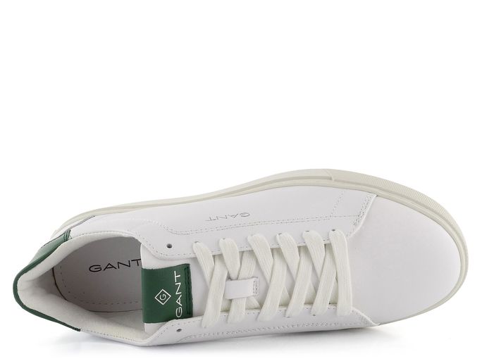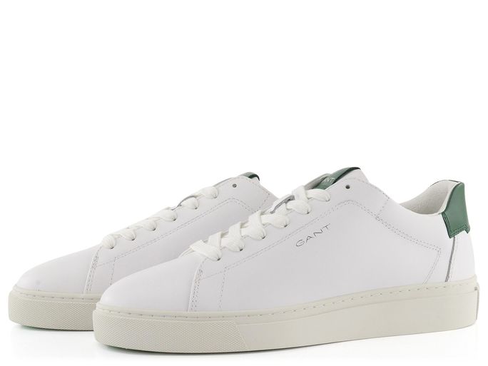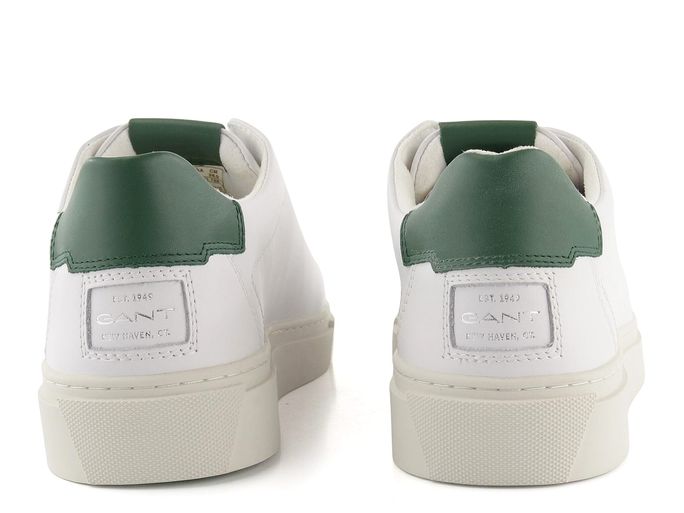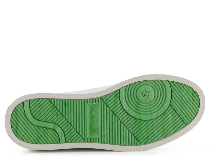 Luxusní pánské tenisky od značky Gant v módním koženém provedení představují ideální volbu pro každého muže, který hledá styl a pohodlí. Jejich ležérní střih s prostornou kulatou špičkou zajišťuje dostatek komfortu při každodenním nošení. Svršek z hladké kůže v odražené bílé barvě s tmavě zelenými doplňky dodává botám elegantní vzhled, který je doplněn decentním logem značky ve stříbrné barvě.