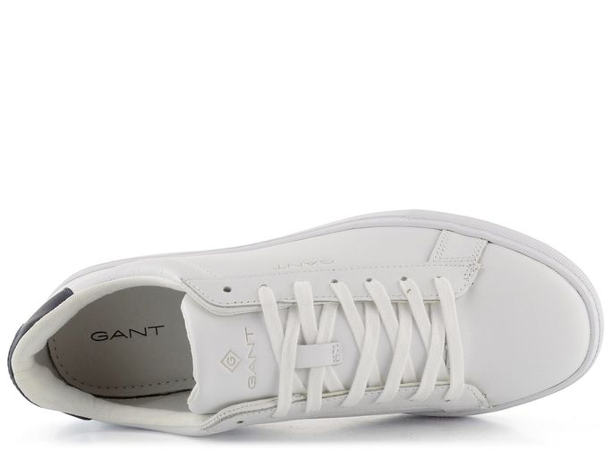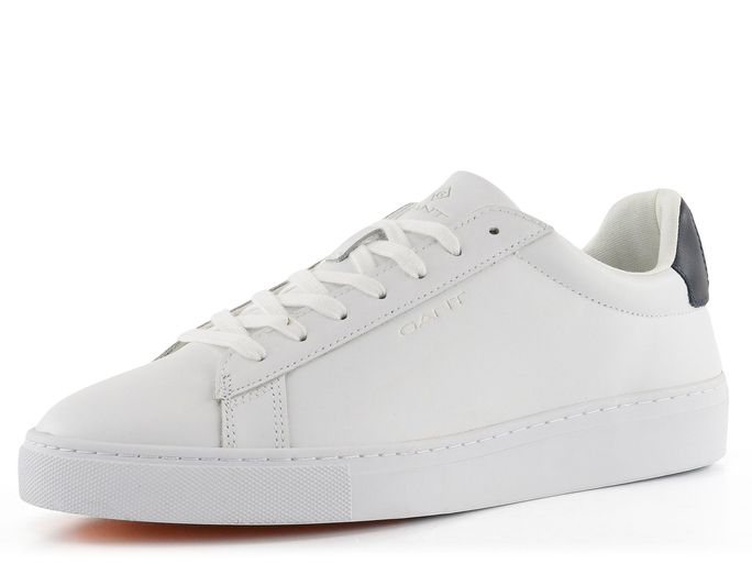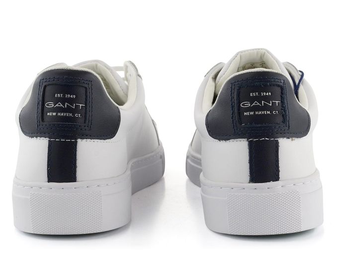 Luxusní pánské tenisky v módním koženém provedení od značky Gant přináší elegantní styl a vysoký komfort. Tento model je ideální pro jarní a letní sezónu, kdy oceníte jeho ležérní střih s prostornou kulatou špičkou. Svršek z hladké kůže v odražené bílé barvě s tmavě modrými doplňky dodává botám moderní vzhled, který podtrhuje decentní logo značky ve stříbrné barvě.