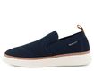 Ležérní model pánských slip-on polobotek z pružného úpletu v tmavě modré barvě.