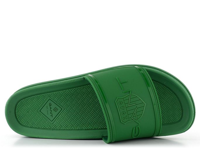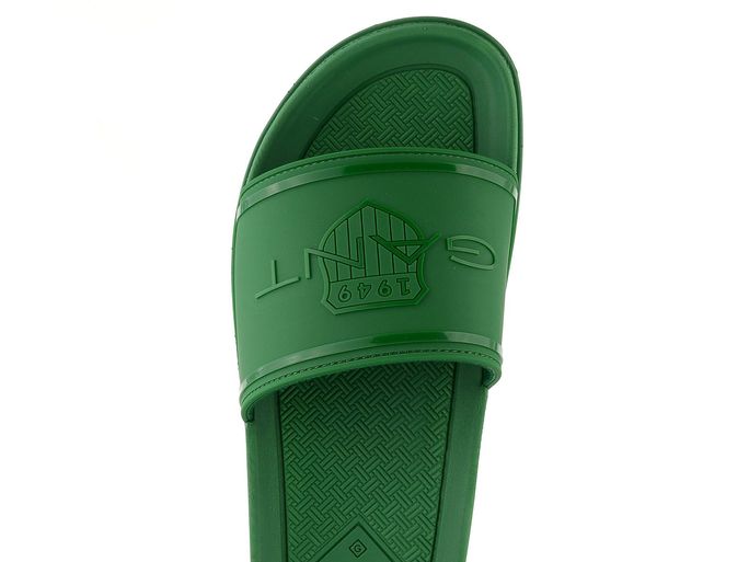 Lehké a stylové pantofle od značky Gant jsou ideální volbou pro letní sezónu. Vyrobeny ze syntetického materiálu, tyto pantofle zaujmou tmavším zeleným odstínem, který je nejen módní, ale i praktický. Filcová textilie na vnitřní straně nártu zajišťuje pohodlí při každém kroku, zatímco velké plastické logo značky na nártovém lemu dodává botám nezaměnitelný charakter.