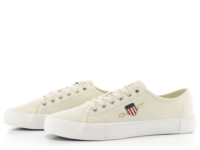 Ležérní model pánských tenisek ve smetanové barvě s dominantním logem značky.