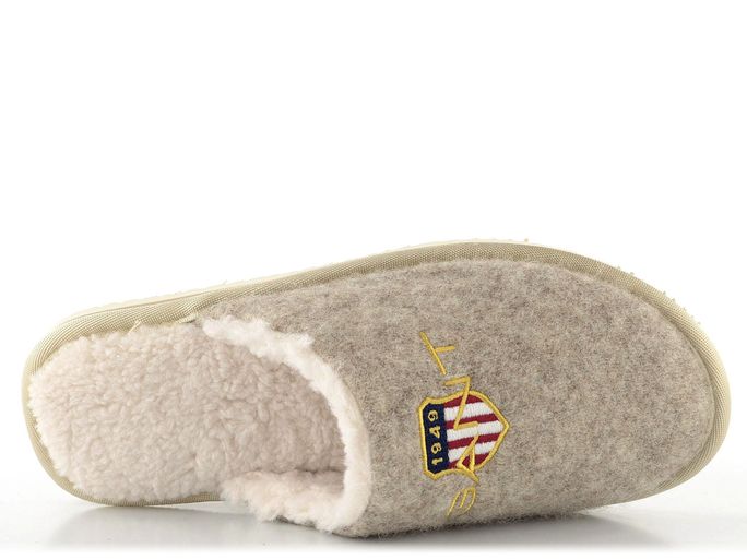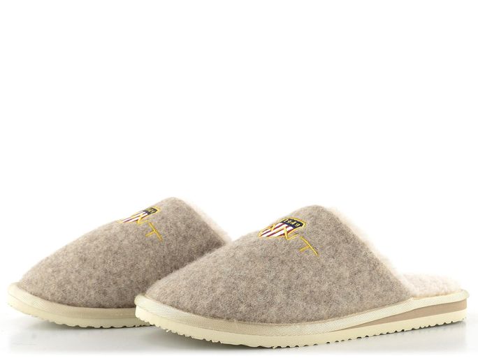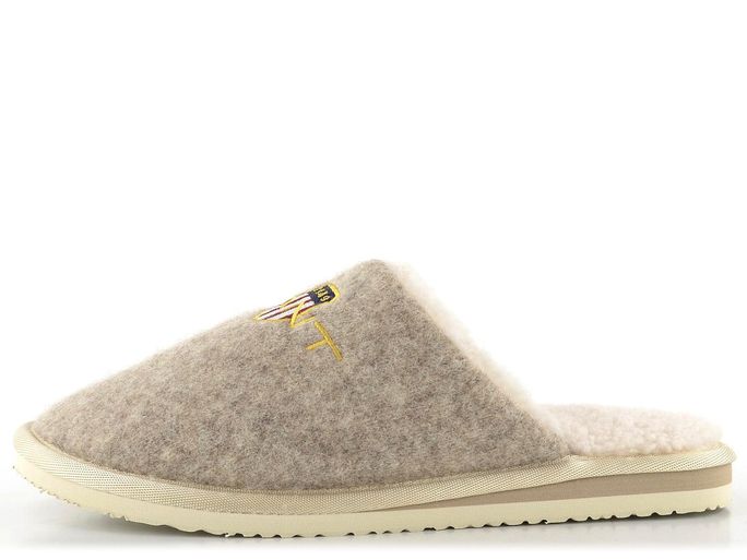 Prožijte pohodlí a styl s dámskými domácími pantoflemi od značky Gant. Ideální pro chladné podzimní a zimní dny, tyto pantofle v odstínu taupe (tmavší béžová s hnědým a šedým nádechem) kombinují eleganci a komfort. Vlněný svršek a hustá textilní kožešinka uvnitř zajišťují teplo a pohodlí, zatímco prostorná uzavřená špička poskytuje dostatek místa pro vaše prsty.