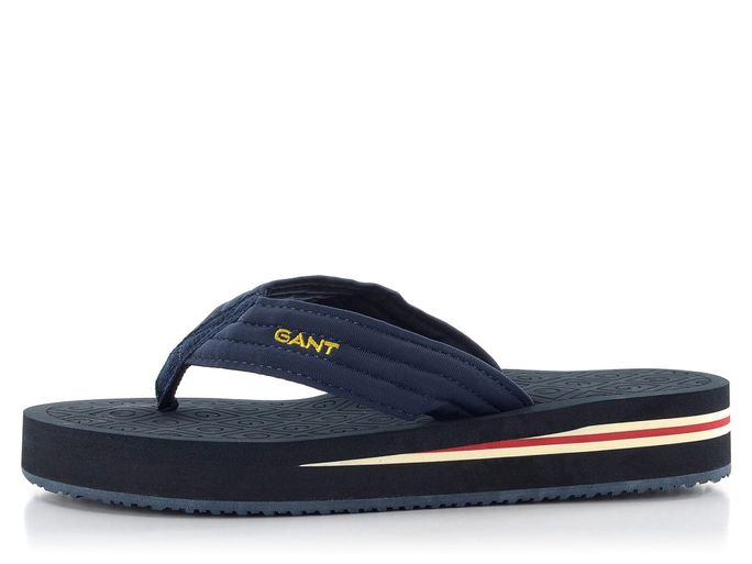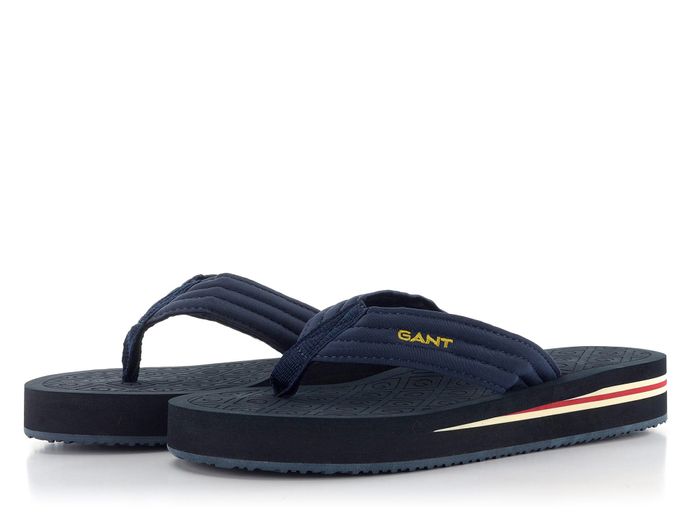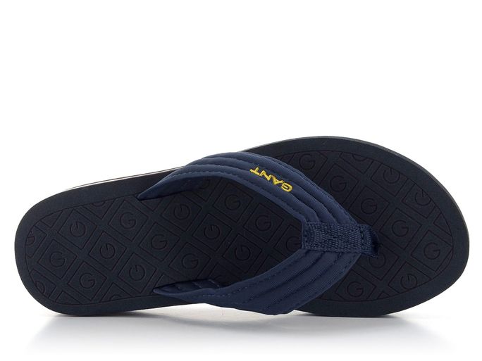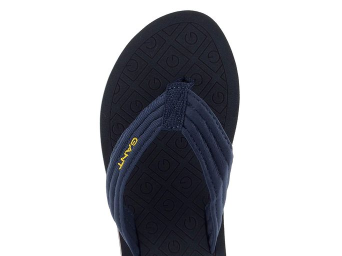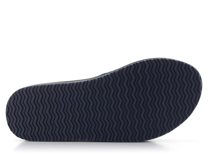 Pohodlné dámské žabky v tmavě modré barvě, na vyšší podešvi s kontrastním pruhem.