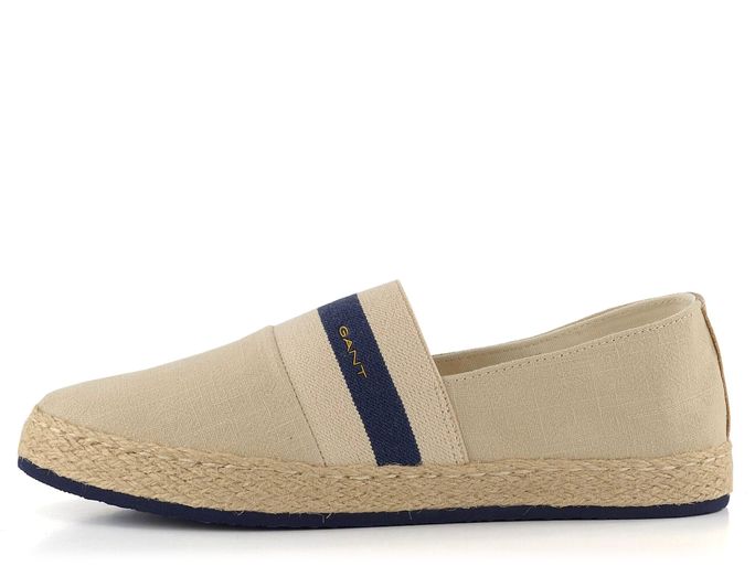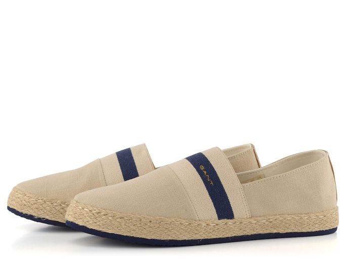 Módní a pohodlné dámské espadrilky v barvě přírodního plátna se širokou pruženkou na nártu a podešví zdobenou jutou.