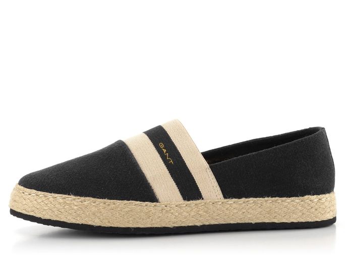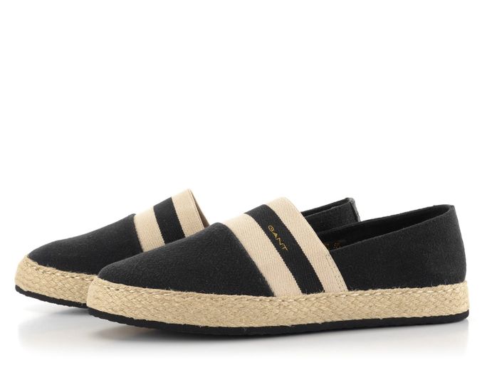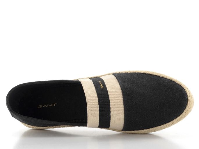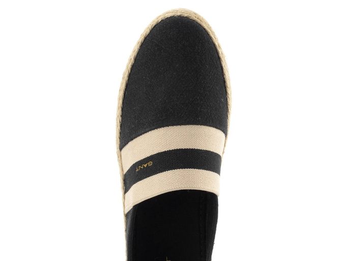 Módní a pohodlné dámské espadrilky v černé barvě s širokou pruženkou na nártu a podešví zdobenou jutou.