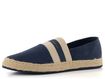 Módní a pohodlné dámské espadrilky v tmavě modré barvě se širokou pruženkou na nártu a podešví zdobenou jutou.