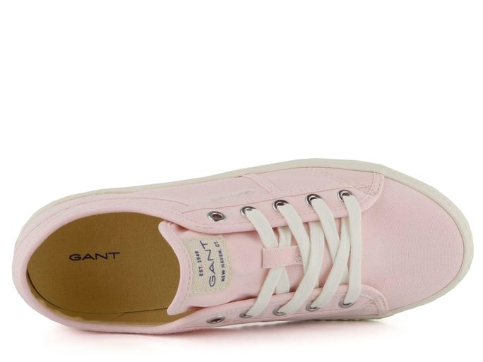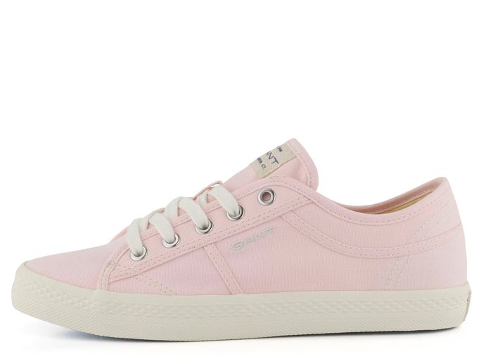Dámské plátěné tenisky ve světle růžové barvě s vyšší rovnou podešví.