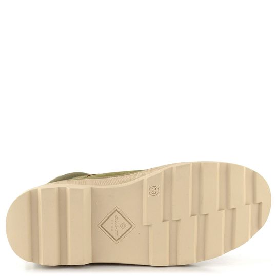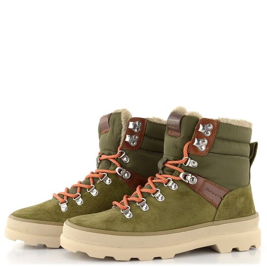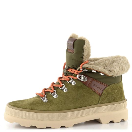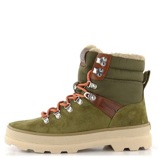 Dámský kotník značky Gant v pohorkovém stylu je skvělou volbou pro podzim a zimu. Tento model kombinuje semišovou kůži s prošívaným nylonem, což zajišťuje nejen atraktivní vzhled, ale i pohodlí. Olivově zelený odstín s hnědými doplňky a oranžovými šněrovadly dodává botám jedinečný styl. Klasické šněrování s pohyblivými očky ve stříbrné barvě a háčky na dotažení zajišťují perfektní přizpůsobení.
