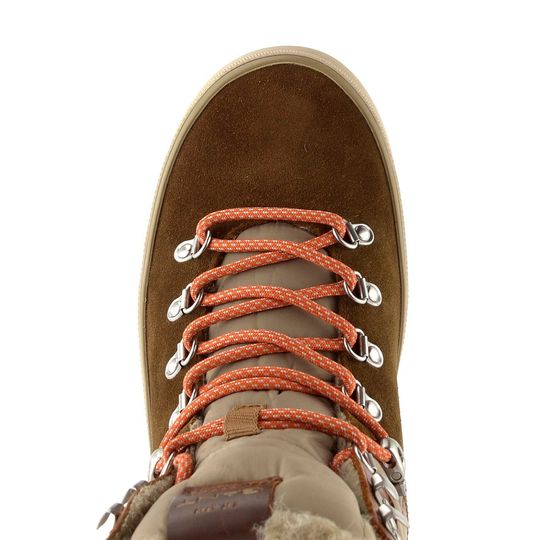 Boty mají šněrování s pohyblivými kovovými očky ve stříbrné barvě a posledními dvěma háčky pro dokonalé dotažení. Polstrovaná a prošívaná kotníková bandáž zajišťuje pohodlí při nošení. Uvnitř najdete velmi teplou podšívku z beránku (50 % vlna, 50 % polyester), která vás zahřeje i v chladných dnech.