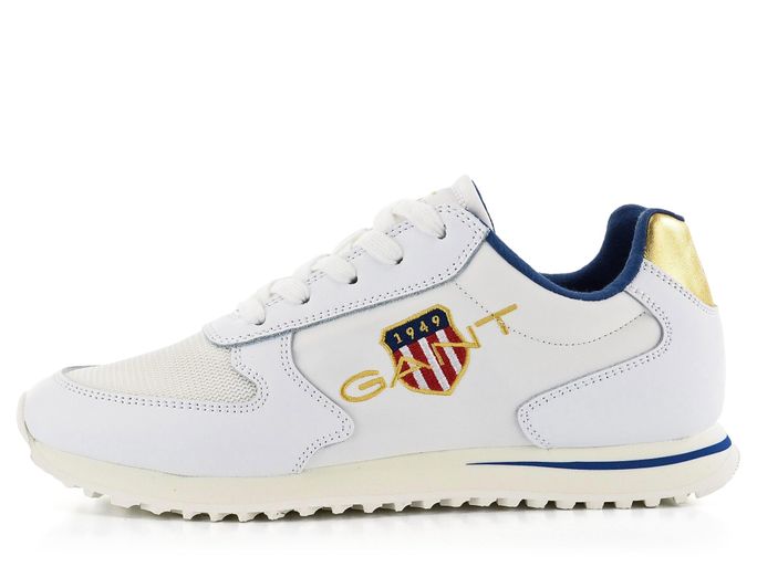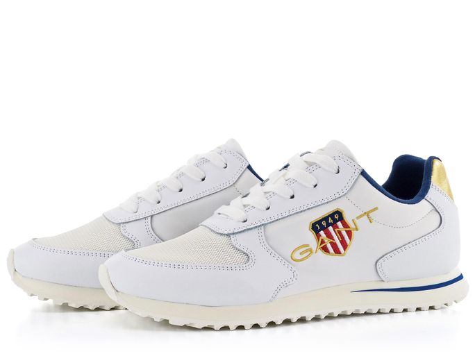 Dámské módní šněrovací tenisky v bílé barvě s vytkávaným logem značky.