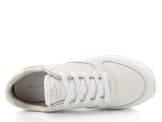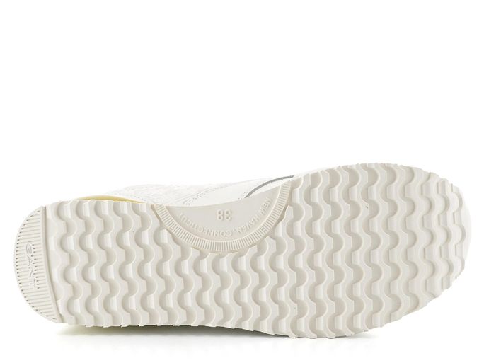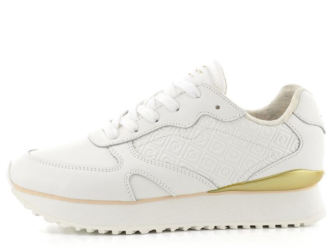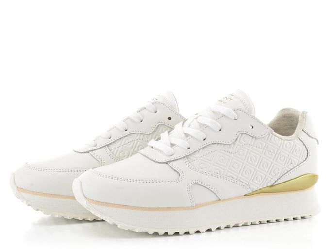 Dámské módní šněrovací tenisky v odražené bílé barvě s vytlačovaným logem značky.
