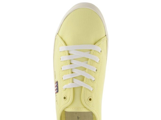 Objevte kouzlo dámských plátěnek ve světle žluté barvě od renomované značky Gant. Tyto tenisky jsou ideální volbou pro jarní a letní sezónu. Díky jejich prostorné kulaté špičce a pevnému plátnovému materiálu se budete cítit pohodlně po celý den. Pastelově žlutá barva dodává botám svěží a moderní vzhled, zatímco dominantní logo značky Gant zaručuje styl a kvalitu.