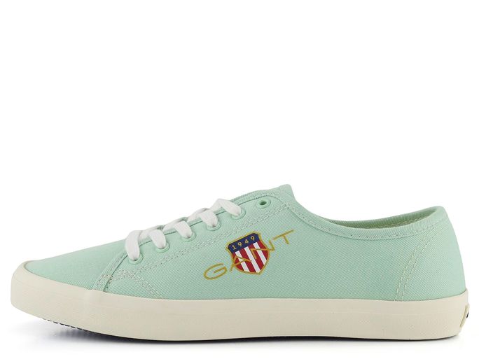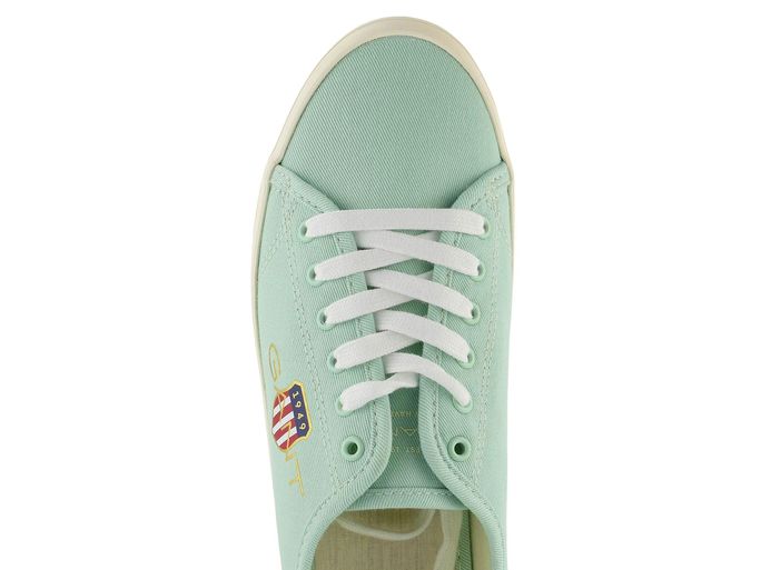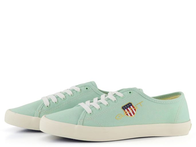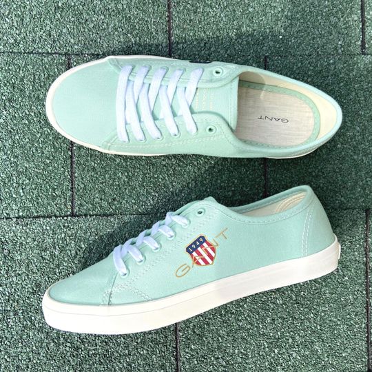 Módní dámské plátěné tenisky v mintově zelené barvě s dominantním logem značky.