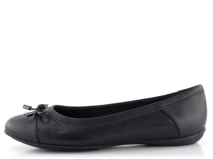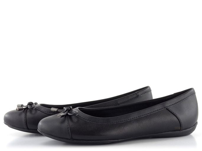Elegantní a pohodlné, takové jsou dámské balerínky značky Geox. Tyto boty se vyznačují jednoduchým a decentním střihem, který je ideální pro každodenní nošení. Kulatá špička a černá barva dodávají balerínkám nadčasový vzhled, zatímco decentní mašlička s kovovými koncovkami přidává jemný, ženský detail. Svršek je vyroben z kombinace hladké kůže a syntetiky, což zajišťuje dlouhou životnost a komfort. Uvnitř najdete textilní podšívku s vyztuženým opatkem a měkkou syntetickou stélku s perforací v přední části pro maximální pohodlí. Unikátní technologie Geox Respira® s perforovanou podešví umožňuje botám „dýchat“ a odvádět vlhkost ven, což přispívá k celodennímu komfortu. Tyto balerínky jsou ideální volbou pro jaro a léto, ať už do kanceláře, na procházku po městě nebo na formální příležitosti.
