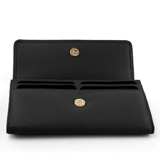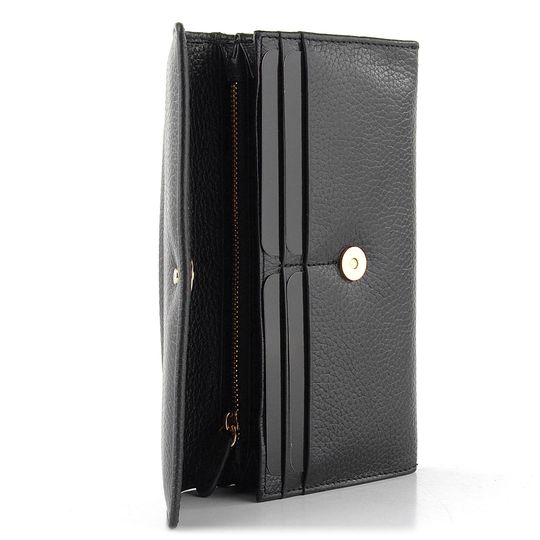 Elegantní a praktická dámská peněženka od značky Geox se stane nepostradatelným doplňkem pro každou ženu. Její podlouhlý tvar a černá barva dodávají peněžence nadčasový vzhled. Vyrobena z poddajné strukturované kůže, nabízí nejen styl, ale i dlouhou životnost. Zapínání klopy na magnetický druk ve zlaté barvě zajišťuje bezpečnost a snadný přístup. Na zadní straně najdete rychlou otevřenou přihrádku. Vnitřní uspořádání zahrnuje 12 přihrádek na karty, 1 přihrádku na doklady, 2 přihrádky na bankovky a zipovou kapsičku na mince. Rozměry peněženky jsou 19,5 cm na šířku, 10 cm na výšku a 2,5 cm na hloubku. Tento model z kolekce jaro/léto 2023 je ideální volbou pro každodenní použití i formálnější příležitosti.