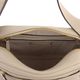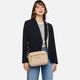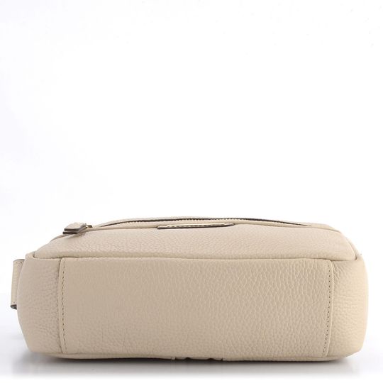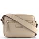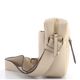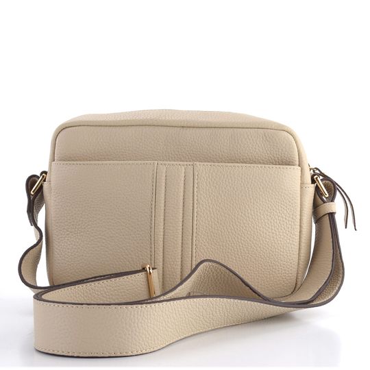Menší kožená crossbody kabelka ve světle béžovém provedení s kovovými doplňky ve zlatém odstínu.