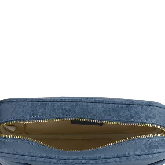 Dámská crossbody kabelka menšího střihu v jeans modré barvě.