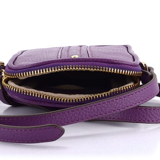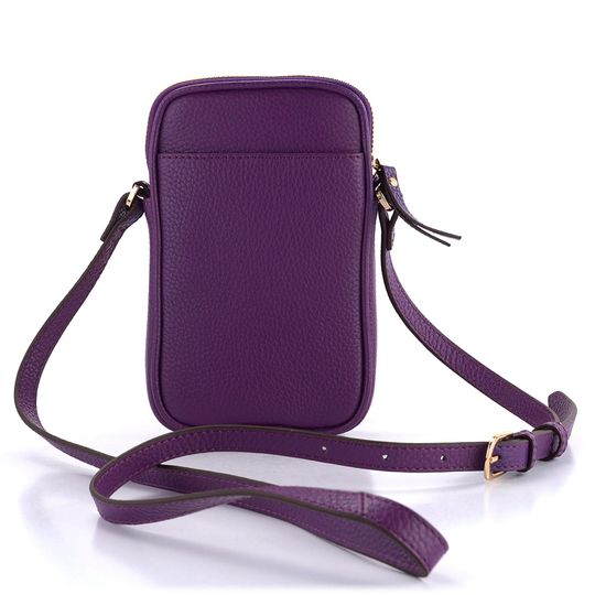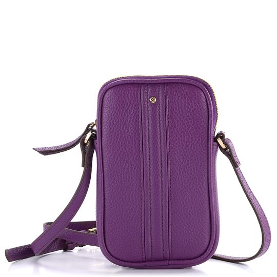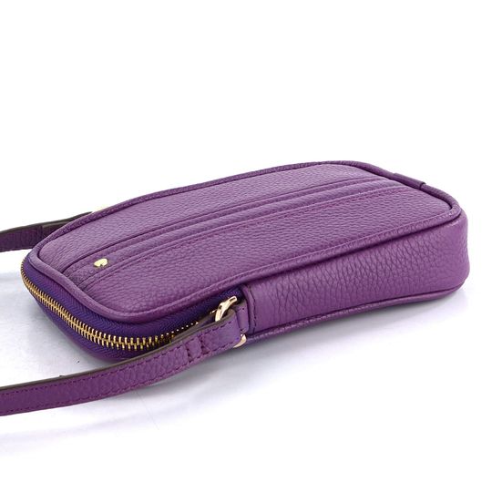 Kožená dámská crossbody kabelka/pouzdro na telefon ve fialové barvě.
