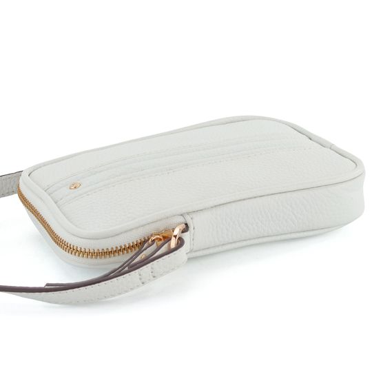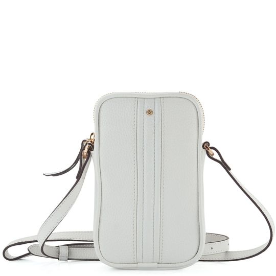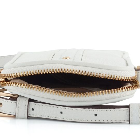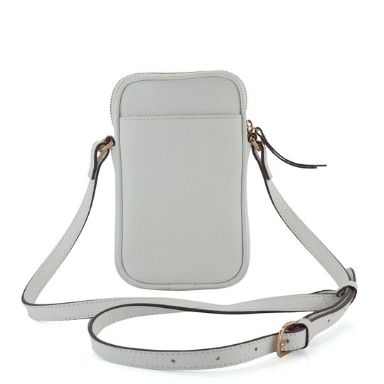 Kožená dámská crossbody kabelka/pouzdro na telefon v bílé barvě.