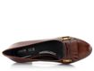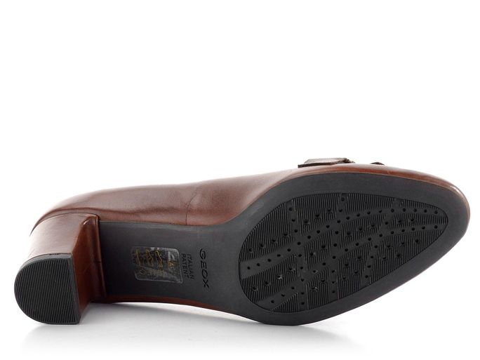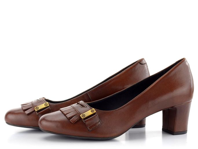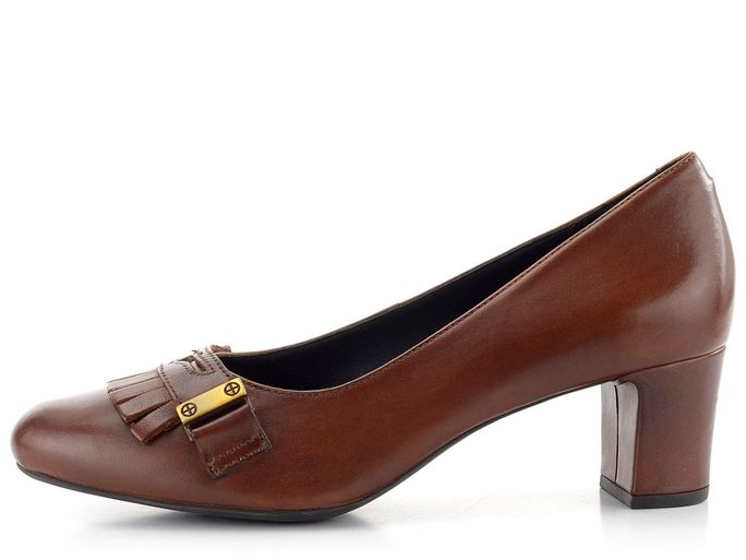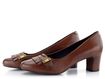 Dámské luxusní lodičky z hladké kůže v tmavě hnědé barvě, na širším stabilním podpatku.