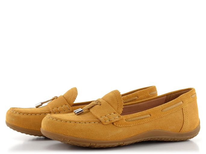Jednoduché dámské kožené mokasíny ve sportovnějším střihu a ve velmi komfortním provedení s dýchající podešví.