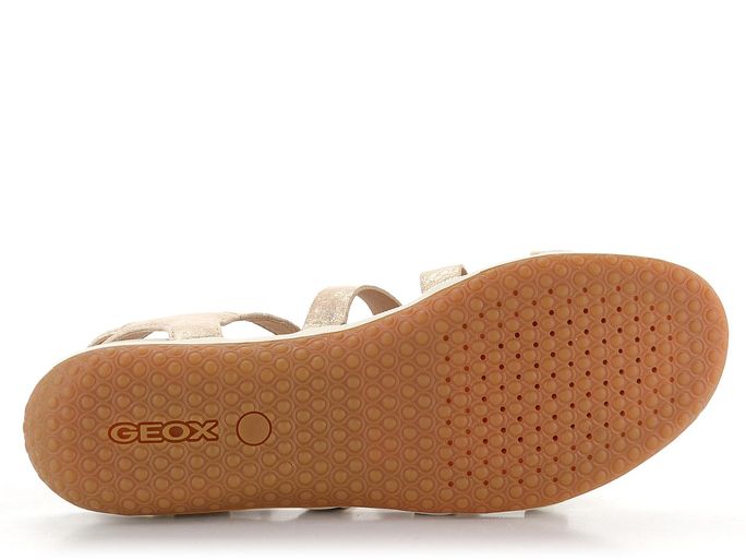 Elegantní a stylové sandály značky Geox, model Vega Sand, jsou ideální volbou pro letní dny. Vyrobeny z kvalitní semišové kůže v béžové metalické barvě, která dodává botám jemný světle zlatý odstín. Díky patnímu pásku s regulací délky a všitou pruženkou se snadno přizpůsobí vašemu chodidlu. Sandály jsou vybaveny měkčenou stélkou s perforací v přední části, což zajišťuje maximální pohodlí při každém kroku. Flexibilní patentovaná podešev Geox Respira® umožňuje proudění vzduchu a odvod molekul páry ven z boty, čímž udržuje nohy svěží po celý den. Latexová podešev garantuje příjemný došlap a lepený výrobní způsob zajišťuje dlouhou životnost. S výškou podpatku 2,8 cm jsou tyto sandály skvělou volbou pro každodenní nošení i lehké procházky městem.