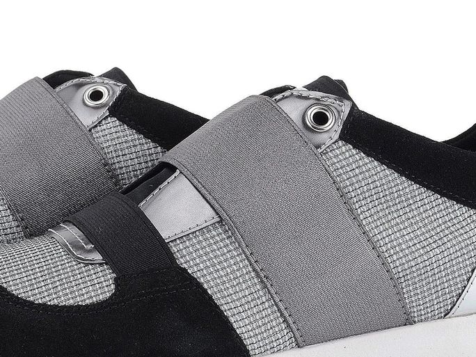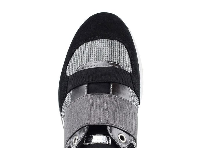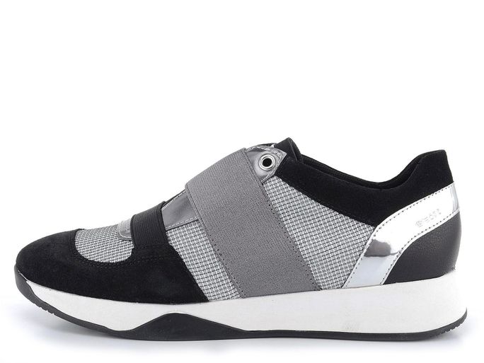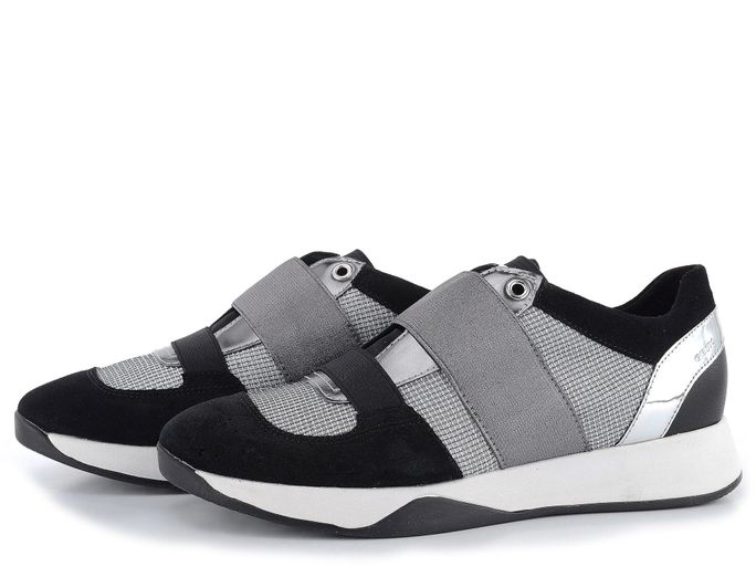 Lehké a prodyšné dámské tenisky od značky Geox jsou ideální volbou pro jaro a léto. Tyto tenisky vynikají sportovním prozouvacím střihem se širokou gumičkou na nártu, což zajišťuje snadné nazouvání a pevné držení na noze. Kombinace semišové kůže, syntetických prvků a prodyšné tkaniny v černé a stříbrné barvě dodává botám moderní vzhled. Vnitřní textilní podšívka a vyjímatelná kožená stélka se změkčenou patní částí a perforací v přední části přispívají k maximálnímu pohodlí. Lehká a dýchající podešev zajišťuje komfort i při delším nošení. Výška podpatku je 3 cm, což dodává teniskám elegantní siluetu. Tento model je vyroben lepeným způsobem, což zaručuje trvanlivost a kvalitu.
