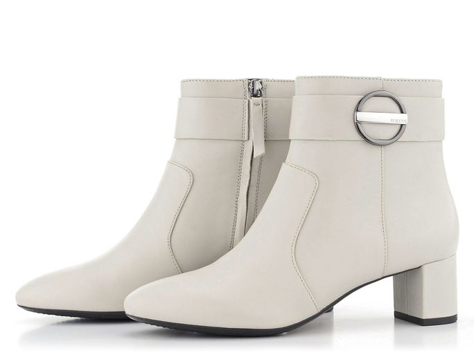 Elegantní celokožený dámský kotník ve světlé barvě, s postranním zipem a dýchající podešví.