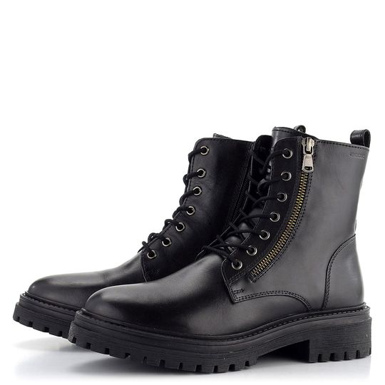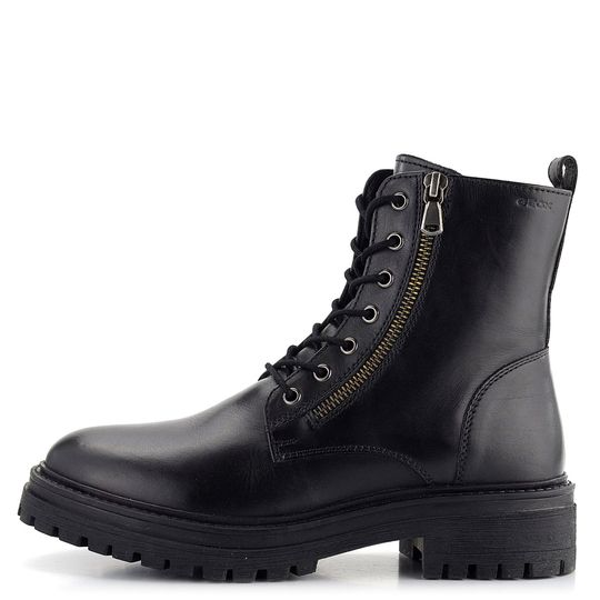 Dámské kotníkové boty značky Geox vynikají svým módním hrubším stylem a kvalitním zpracováním. Vyrobené z pevné hladké kůže v černé barvě, tyto boty nabízejí nejen pěkný tvar špičky, ale i praktičnost. Klasické šněrování je doplněno o ozdobný (nefunkční) zip na vnější straně a funkční zip na vnitřní straně pro snadné obutí. Uvnitř najdete hladkou textilní podšívku, která zajišťuje komfort bez zbytečného tepla. Syntetická stélka je měkká a příjemná na nošení. Robustní latexová podešev s hrubým vzorkem a technologií Geox Respira® (podešev, která dýchá) poskytuje stabilitu a pohodlí. Výška kotníku je 14 cm (bez podešve) a podpatky mají výšku 4,2 cm. Tento model je ideální pro podzimní a zimní sezónu 2023/24.
