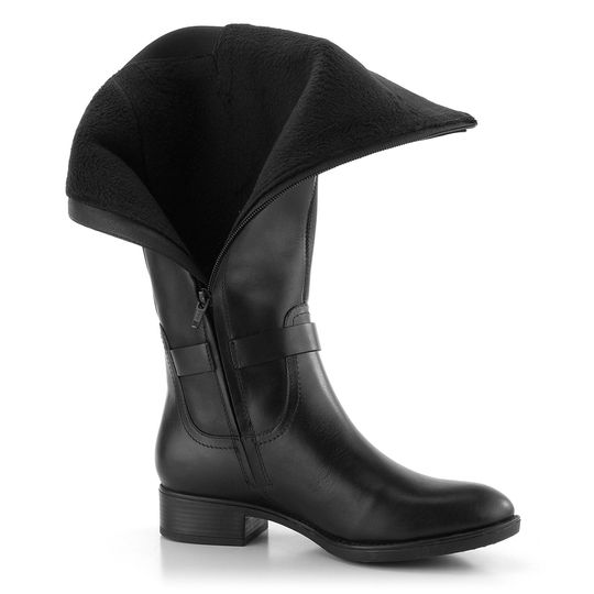 Luxusní dámské kožené kozačky v černé barvě, s teplou podšívkou a nízkým pohodlným podpatkem.
