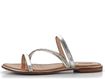 Dámské pantofle s úzkými pásečky ve stříbrné barvě se štrasovými kamínky a s patentovanou podešví.