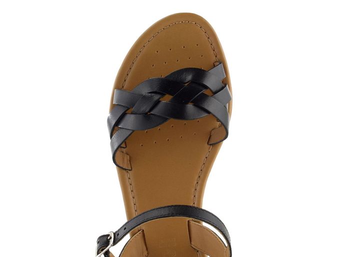 Elegantní a pohodlné dámské sandály od italské značky Geox jsou ideální volbou pro letní dny. Tyto sandály spojují styl, komfort a funkčnost. Svršek je vyroben z hladké kůže v černé barvě, což zajišťuje nadčasový vzhled. Přední pásek je ozdobně splétaný, což dodává botám jemný a sofistikovaný detail. Vnitřní strana pásků a měkká stélka s perforací v přední části jsou také z kůže, což zajišťuje maximální pohodlí při nošení. Sandály mají patní pásek s regulací a všitou pruženkou pro dokonalé přizpůsobení. Patentovaná perforovaná podešev Geox Respira® umožňuje proudění vzduchu a odvod vlhkosti, což udržuje nohy suché a svěží. S výškou podpatku 1,5 cm jsou tyto sandály skvělou volbou pro každodenní nošení.