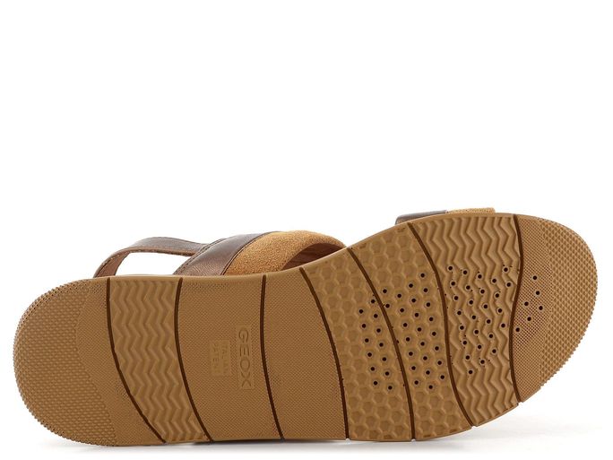 Dámské páskové sandály značky Geox jsou ideální volbou pro ty, kteří hledají stylovou a pohodlnou obuv na jaro a léto. Tyto sandály kombinují semišovou kůži a hladkou syntetiku v elegantní světle hnědé (camel) a bronzové metalické barvě. Polstrované a měkké pásky zajišťují maximální komfort při nošení, zatímco semišová stélka s perforací v přední části poskytuje výjimečné pohodlí. Patní pásek s délkovou regulací a všitou pruženkou umožňuje snadné přizpůsobení obuvi. Patentovaná perforovaná podešev Geox Respira® zajišťuje prodyšnost a odvod vlhkosti, což je ideální pro teplé dny. S výškou podpatku 2,3 cm jsou tyto sandály nejen elegantní, ale i praktické pro každodenní nošení.