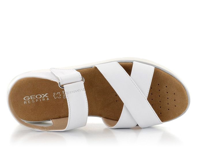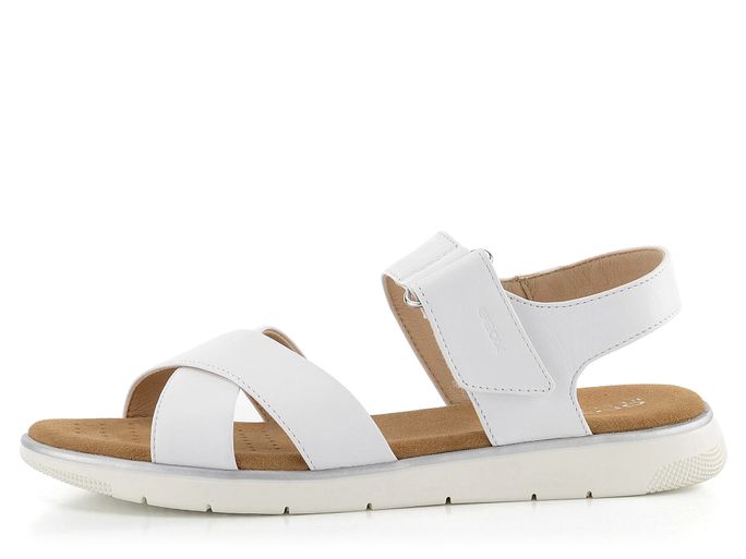 Dámské sandály v bílé barvě s kříženými koženými pásky a s podešví, která dýchá.