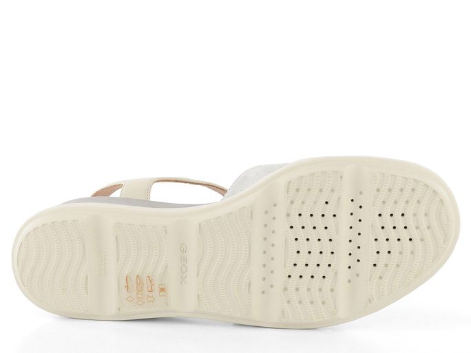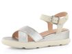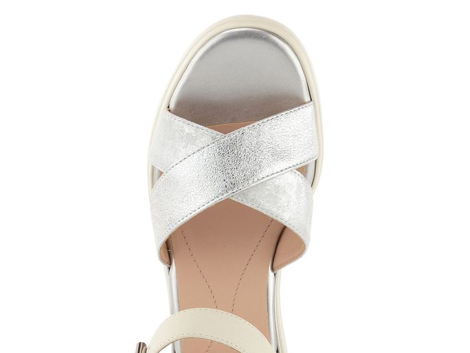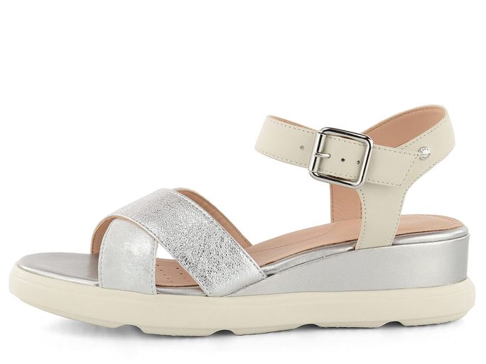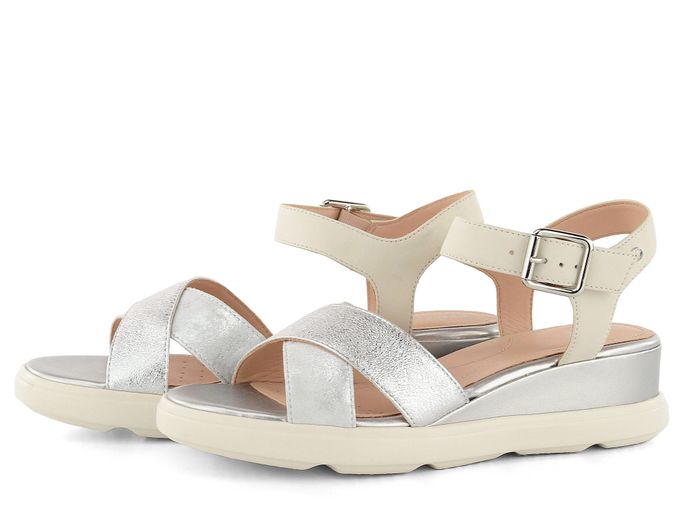 Dámské módní sandály ve stříbrném a krémovém provedení, s pohodlnou výškou klínku.