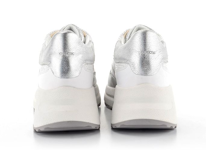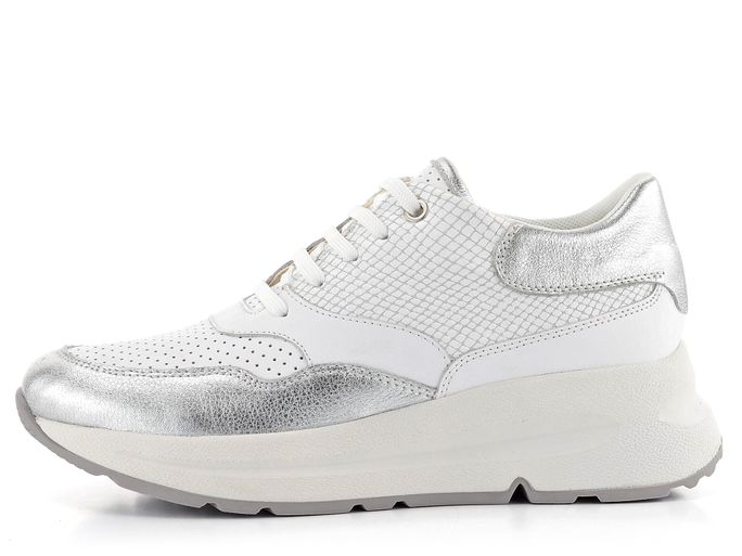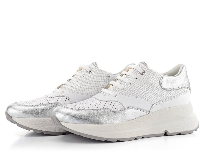Dámské kožené tenisky na klínu v bílo-stříbrné kombinaci barev.