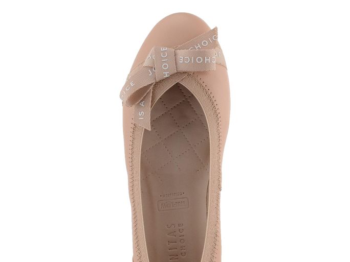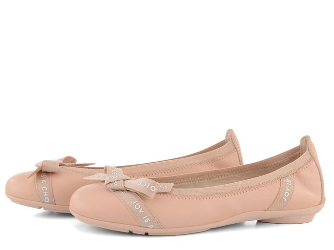 Dámské světle růžové baleríny s potištěnou mašličkou a vnitřní celokoženou podšívkou.