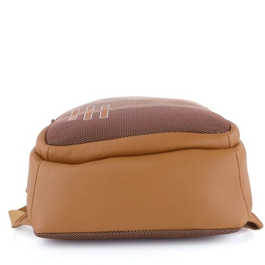 Prostorný střih umožňuje snadno uložit dokumenty ve formátu A4, zatímco polstrovaná hlavní kapsa je perfektní pro notebook nebo tablet. Kombinace strukturované syntetiky a síťoviny v hnědé a bílé barvě dodává batohu výrazný vzhled. Praktické zipové a otevřené kapsy poskytují dostatek prostoru pro všechny vaše cennosti. Nastavitelné polstrované popruhy a madlo do ruky zajišťují pohodlí při nošení.