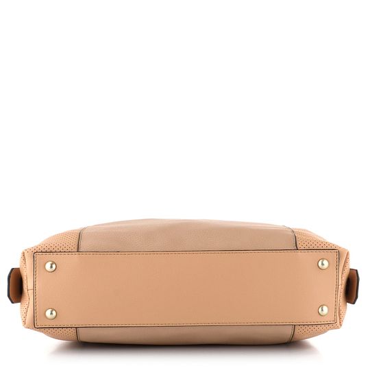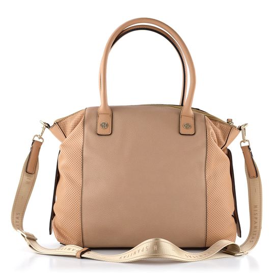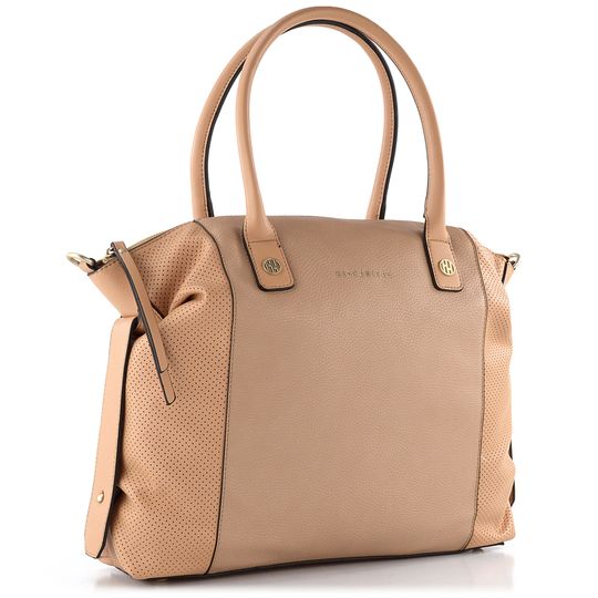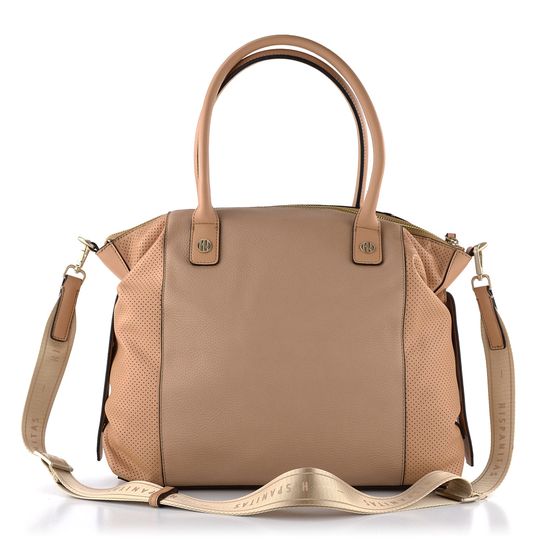 Luxusní dámská shopper kabelka v elegantním střihu a pěkném odstínu béžové barvy s pudrovým nádechem.