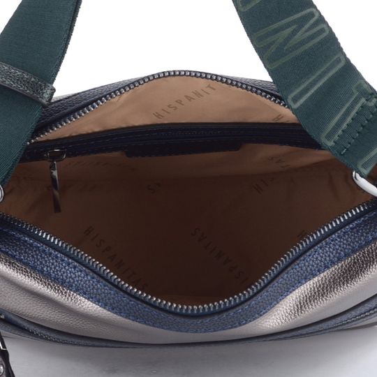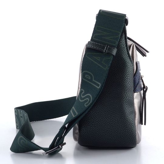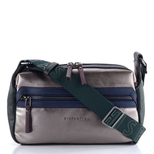 Dámská crossbody kabelka ve sportovnějším stylu od značky Hispanitas je ideálním doplňkem pro podzimní a zimní sezónu. Její menší velikost a poddajná strukturovaná metalická syntetika zajišťují pohodlné nošení a moderní vzhled. Kabelka vyniká krásně sladěnými odstíny tmavě zelené, tmavě modré, bordó a kovově šedé barvy, což z ní činí stylový kousek pro každodenní použití. Kování v barvě tmavší oceli a pohotovostní zipová kapsička na přední straně dodávají kabelce praktické prvky. Široký textilní ramenní popruh s délkovou regulací (60 - 105 cm) umožňuje nosit kabelku klasicky nebo jako crossbody. Shora uzavíratelná na dvoucestný zip, s vnitřní výbavou v podobě jedné zipové kapsičky na cennosti a jedné malé kapsičky bez uzavření. Rozměry: šířka 27 cm, výška 16,5 cm, hloubka dna 8,5 cm. Tento model je součástí kolekce PZ 2024/25.