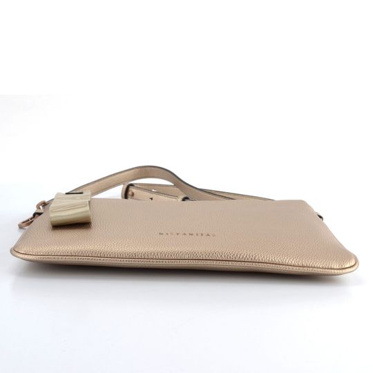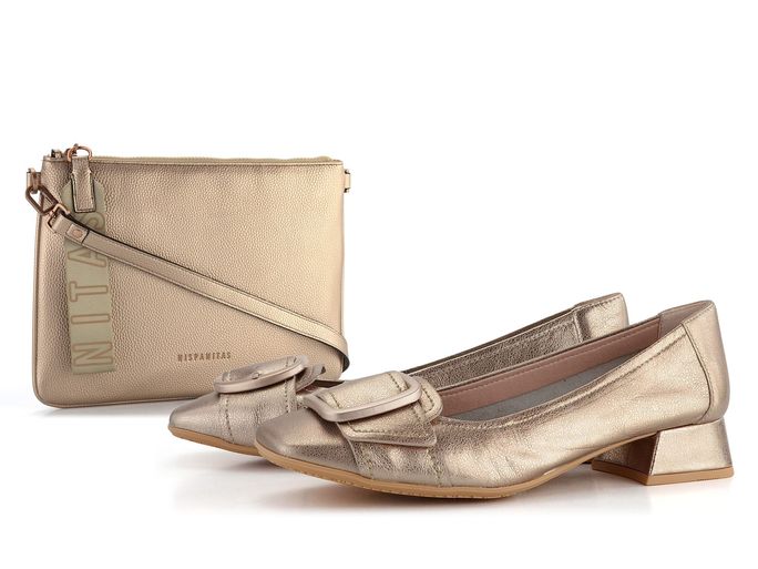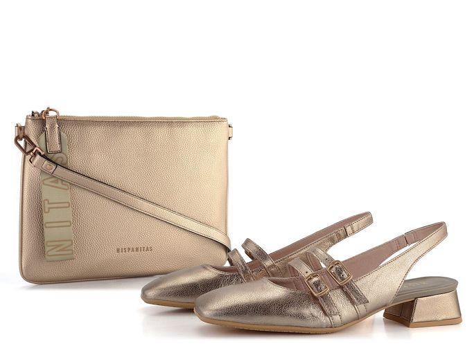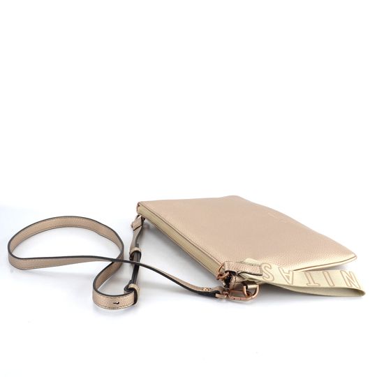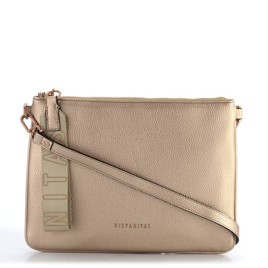 Elegantní a stylová crossbody kabelka od značky Hispanitas je perfektní doplněk pro každou moderní ženu. Tato kabelka vyniká svým plochým tvarem a je vyrobena z poddajné strukturované syntetiky, která zaručuje dlouhou životnost a odolnost. Světle zlatá metalická barva dodává kabelce luxusní vzhled, zatímco kovové detaily v matném bronzovém odstínu podtrhují její eleganci.