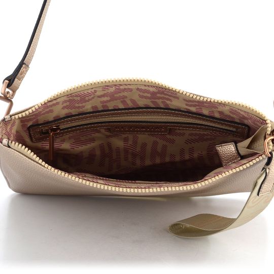 Uzavíratelná na zip se širokým poutkem, kabelka nabízí praktické uspořádání vnitřního prostoru: 1x zipová kapsička na cennosti a 1x malá kapsička bez uzavření. S rozměry 31 cm na šířku a 23 cm na výšku je dostatečně prostorná pro všechny vaše nezbytnosti, aniž by byla příliš objemná.