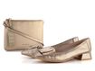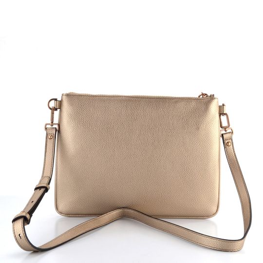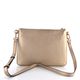 Stylová dámská crossbody kabelka menší velikosti v jemném metalickém odstínu světle zlaté barvy.